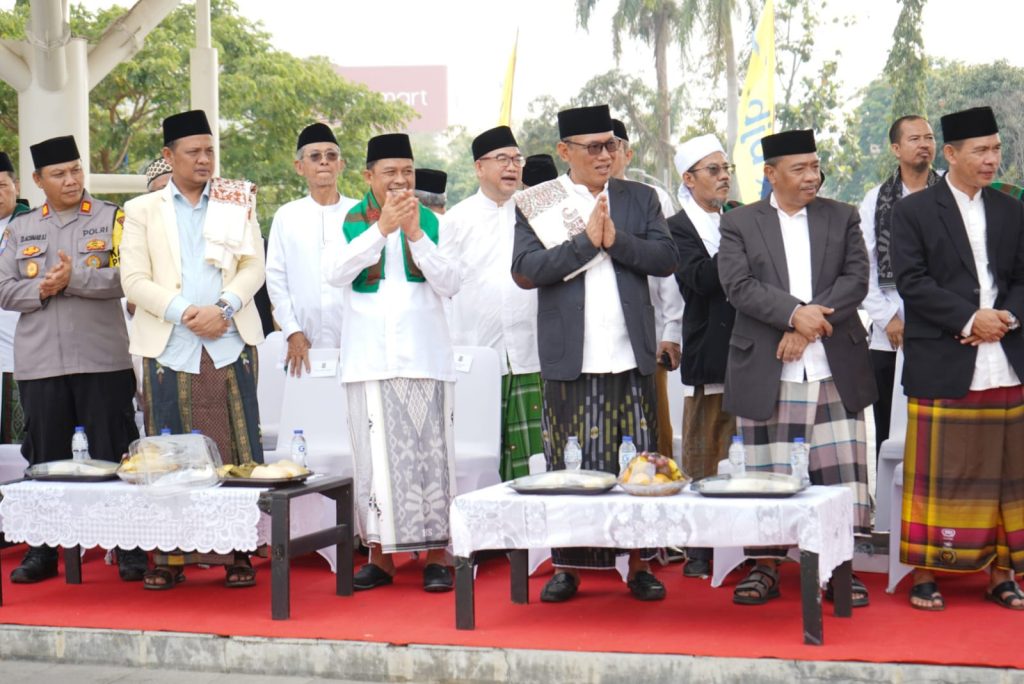 CILEGON, KM – Ribuan santri dari lebih dari 30 pondok pesantren se-Kota Cilegon berkumpul di Alun-alun Kota Cilegon mengikuti Upacara Hari Santri Nasional, Minggu 22 Oktober 2023.
