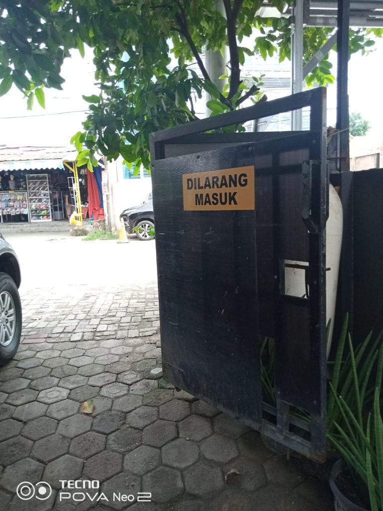 Larangan Masuk yang terpasang dipagar yang merupakan jalur masuk lokasi pembangunan rumah untuk anak yatim