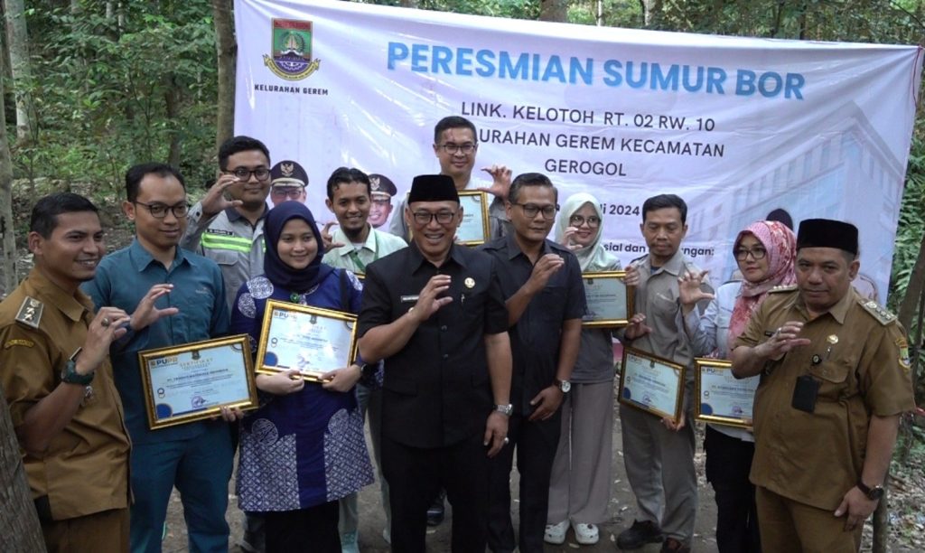 CILEGON, KM – Wali Kota Cilegon Helldy Agustian meresmikan sumur bor air bersih di Lingkungan Gerem Kelotoh, RT 02/10, Kelurahan Gerem, Kecamatan Gerogol, Senin 1 Juli 2024.