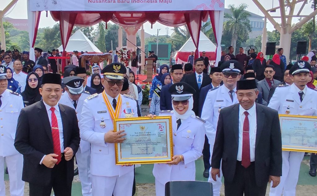 Penghargaan diserahkan langsung oleh Walikota Cilegon Helldy Agustian seusai Pemerintah Kota Cilegon menggelar acara penaikan Bendera merah putih dalam rangka HUT RI ke-79 yang belokasi di Alun-alun kota Cilegon