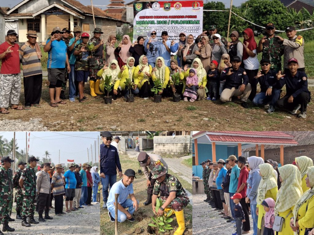 Foto : Dokumentasi kegiatan penanaman pohon Warga Lingkungan Kaligandu RW 04 Kelurahan Purwakarta bersama KORAMIL 2303/Pulomerak