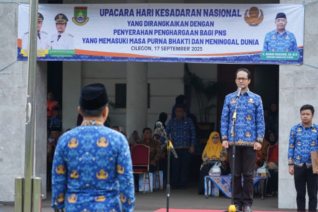 CILEGON, KM – Wakil Wali Kota Cilegon Fajar Hadi Prabowo menekankan tentang pentingnya pelayanan publik. Hal tersebut dikatakannya saat memimpin upacara Hari Kesadaran Nasional di Halaman Kantor Wali Kota Cilegon, Rabu 17 September 2025.