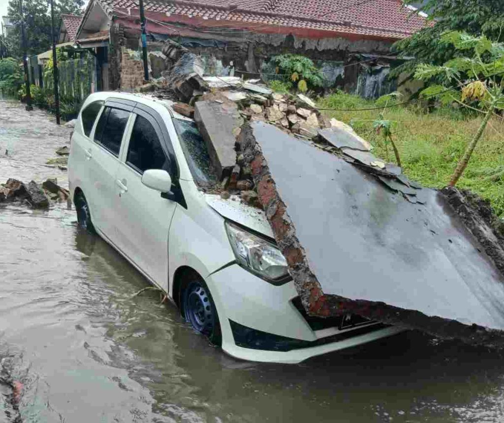 Akibat Banjir, Pagar Tembok Rubuh Timpa Mobil Warga Komplek KS Pagebangan Cilegon