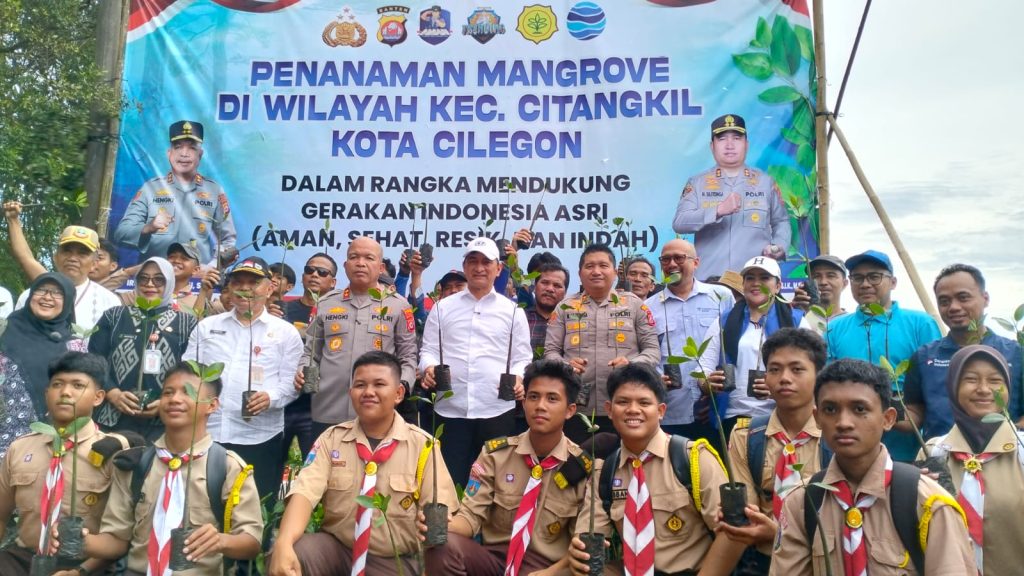 CILEGON , KM – Dalam rangka mendukung gerakan Indonesia ASRI, Kepolisian Daerah (Polda) Banten bersama Polres Cilegon, melaksanakan kegiatan penanaman 1.000 pohon mangrove jenis bakau di areal seluas 1 hektar di Kota Cilegon, Provinsi Banten, Jumat (24/4/2026).