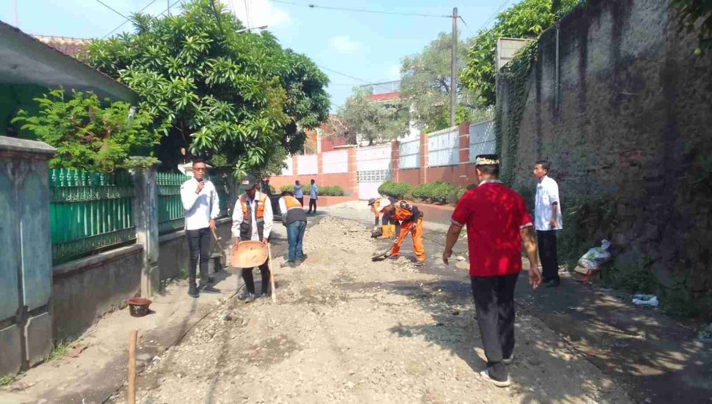 Proses perbaikan jalan imam Bonjol Cibeber Barat Kelurahan Cibeber, rabu 29 April 2026
